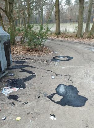 Neulich wurde auf dem Schotterparkplatz am Waldschwimmbad Lorsch Vandalismus in Form eines Umweltdeliktes betrieben. Die dort aufgestellten Glascontainer sowie der Boden wurden durch Altöl massiv verschmutzt. Glücklicherweise war der Boden gefroren, dass das Altöl nicht tief in das Erdreich eindringen konnte. Die Aktion erforderte es, dass der Boden so weit wie nötig von einer Fachfirma abgetragen werden musste. Es entstand ein Sachschaden in Höhe von ca. 4.100 €.